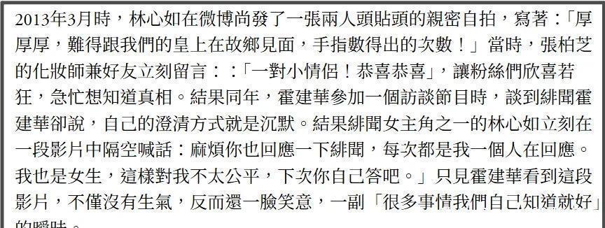 林心如拿霍建华的手机举例,提到自家老公一个手机用五六年,面板都裂了也不换,只要能用就继续用,还好霍建华对家人很大方,这个家人其实就是指他们女儿,只要女儿想要的东西,霍建华立马就买。